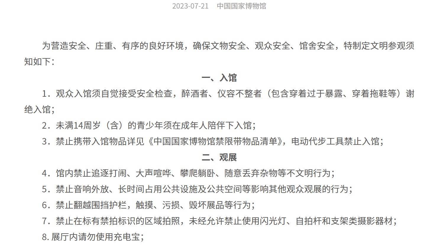 记者查询国内多家知名博物馆的参观须知发现,类似“一刀切”禁止携带相机的情况较为少见。